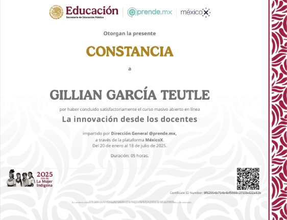 Como parte de la Unidad de Aprendizaje III, realicé el desarrollo y seguimiento de un curso MOOC titulado La innovación desde los docentes, el cual se llevó a cabo de manera virtual. Esta actividad la completé desde casa y entregué el producto final el 19 de junio de 2025.