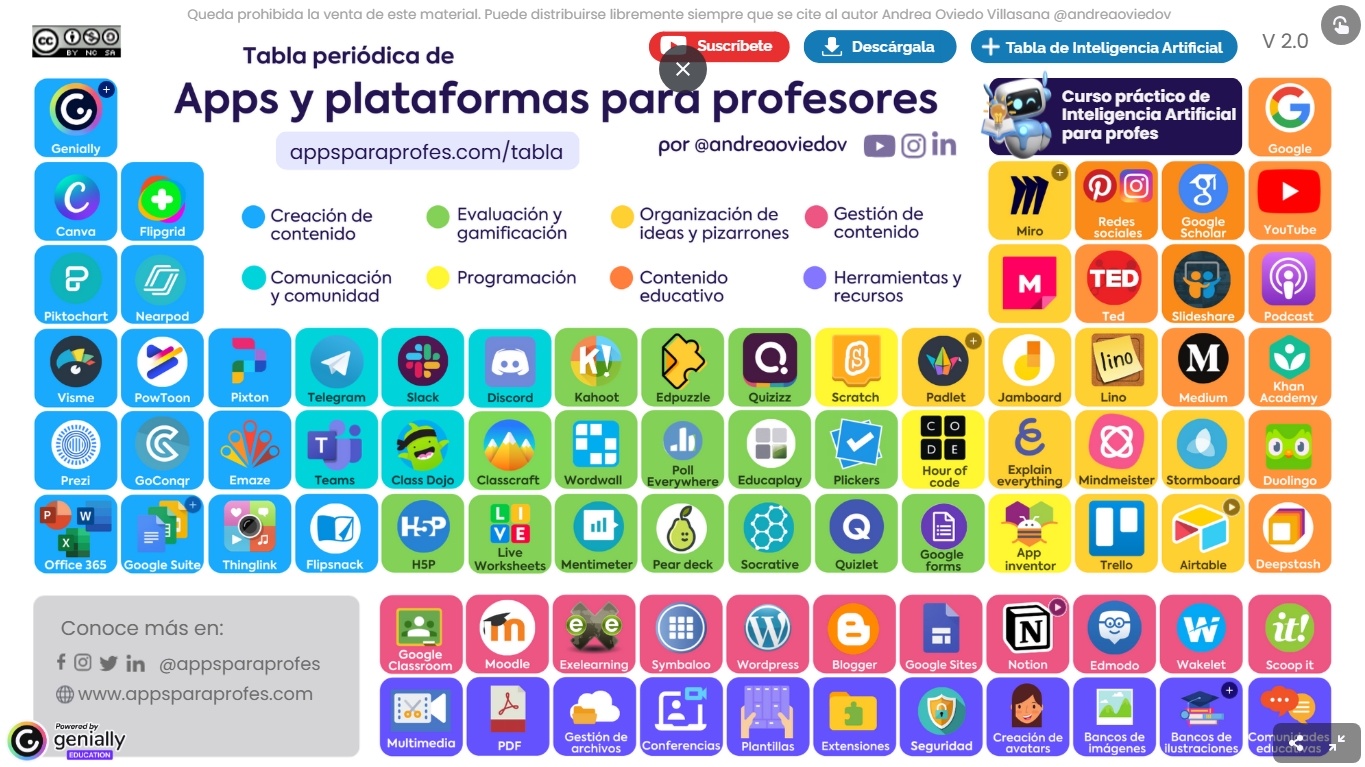 La Tabla Periódica de las Apps, un material visual que agrupa una gran variedad de aplicaciones digitales clasificadas por categorías y usos educativos.